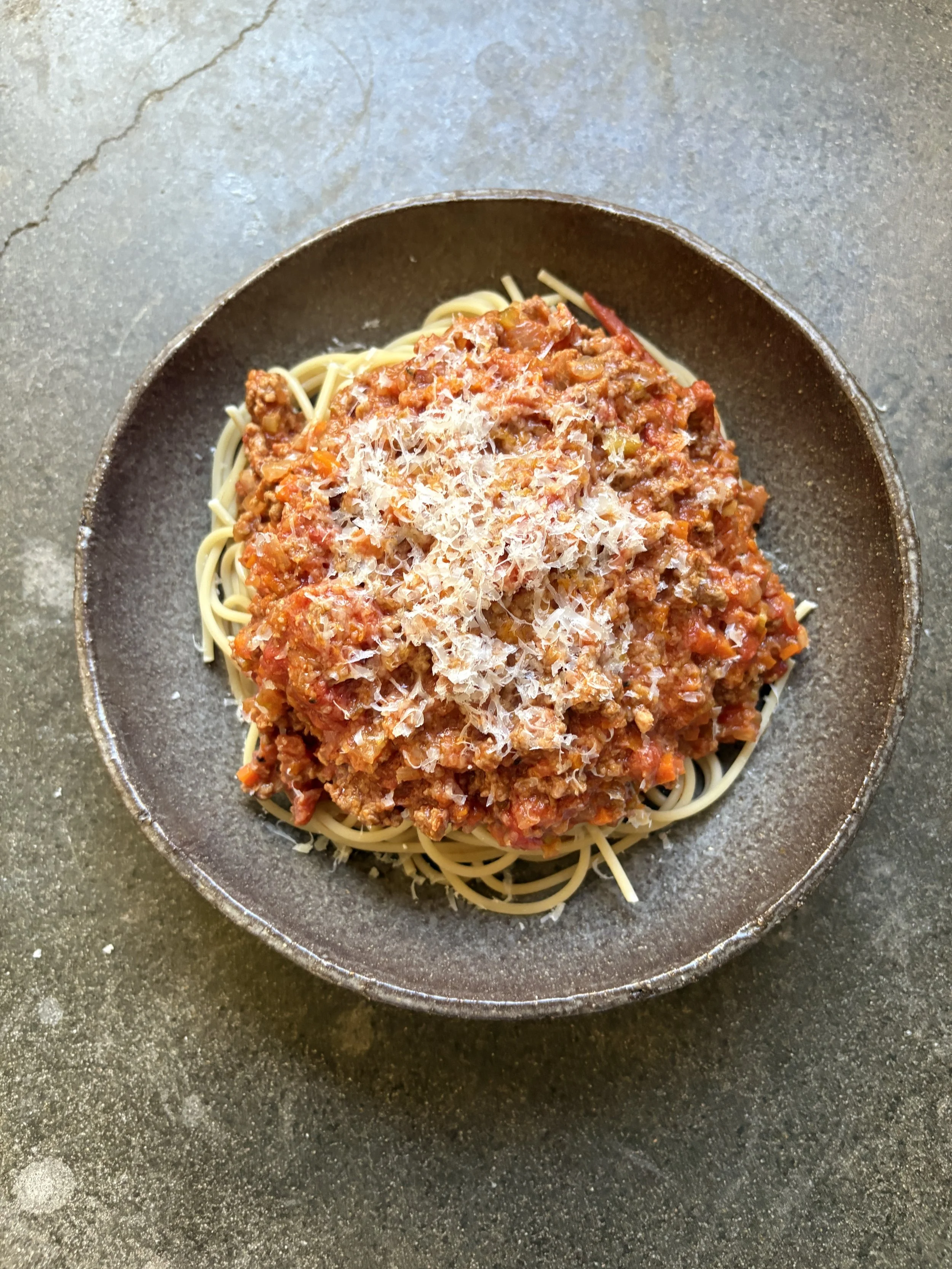 Bolognese Sauce, made the day before and stored in the refrigerator